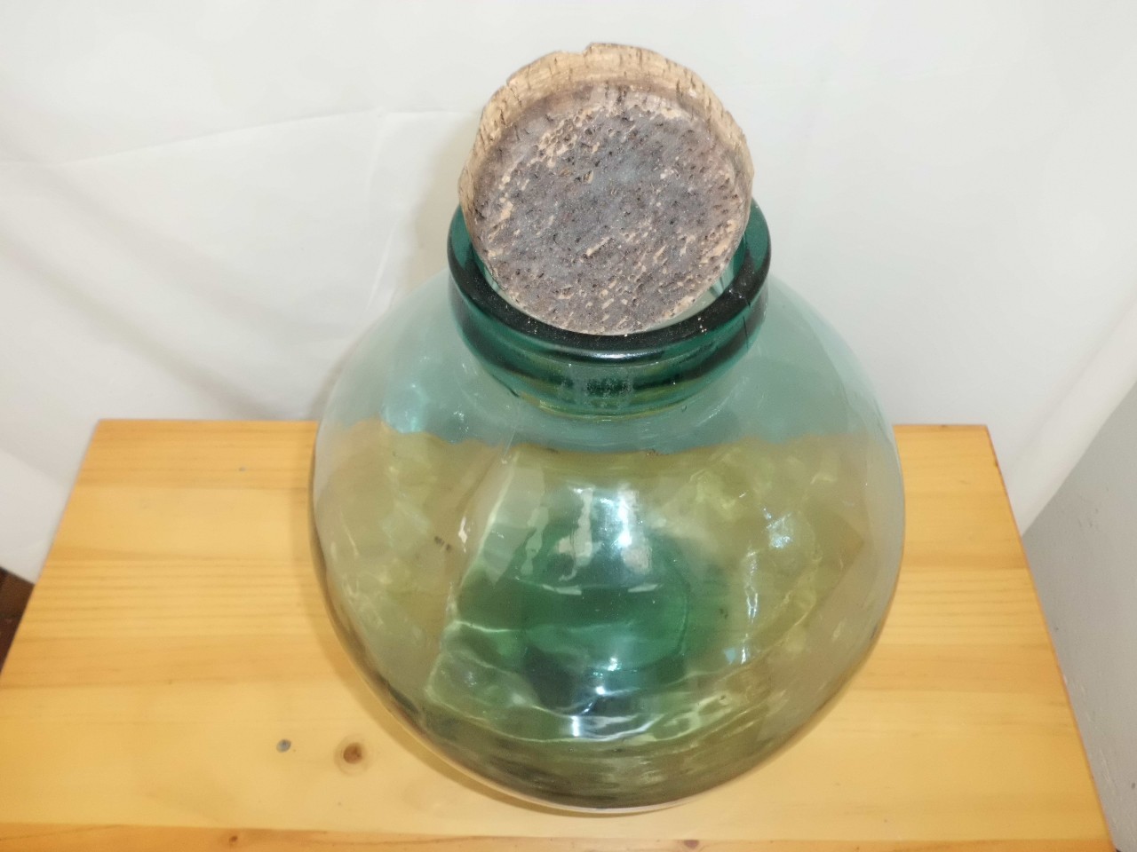Garrafa de cristal verde con corcho para el vino, aceitunas para hacer floreros, lamparas etc. 10 litros.